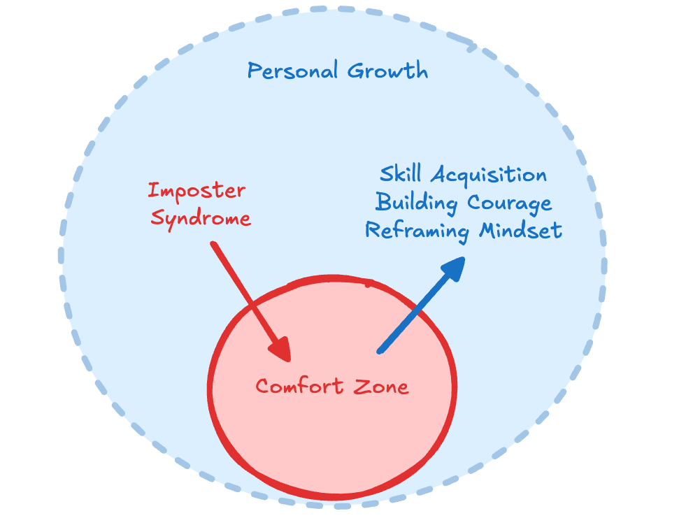 Imposter syndrome is not something we get rid off. Instead, it is a natural feeling when we try something new outside our comfort zone, and the goal is to hear it, acknowledge it, and then manage it.